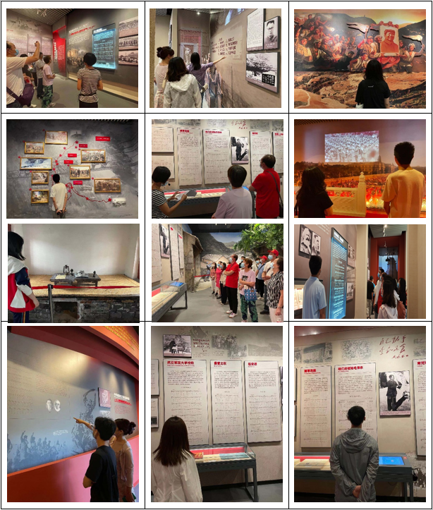 党员们首先跟随着馆内讲解员参观了展陈面积约1611平方米的没有共产党就没有新中国纪念馆。通过以中国共产党百年历史为主线,以革命歌曲为主要载体的“人民的心声,历史的旋律”主题展,学习了建党以来各历史时期产生的210首革命歌曲及其背后的党史故事,更深入地了解了当时的社会风貌,更深入地感受了其中的革命情怀。210首歌曲、丰富的图片、文物和党史故事让党员们充分地认识了中国共产党带领全国各族人民从站起来、富起来到强起来的丰功伟绩,更加深刻地体会到没有共产党就没有新中国是人民的心声,历史的旋律。